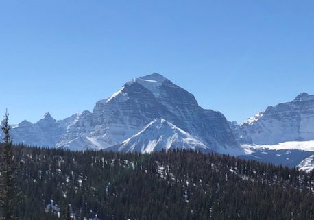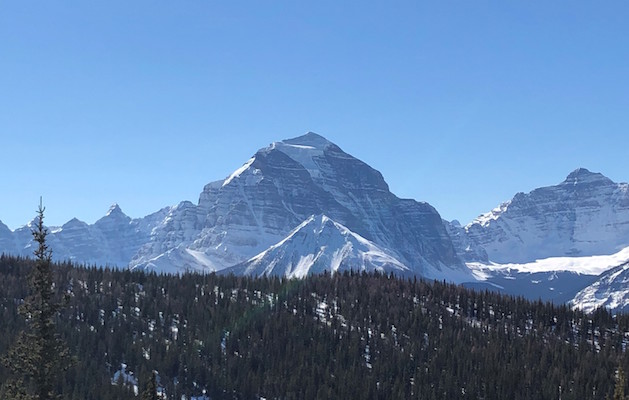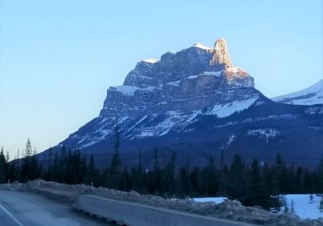 Driving up the Trans-Canada Highway, you are greeted by spectacular scenery on all sides – razor-backed mountain ridges, deep snowy valleys and my favorite vista – Castle Mountain.